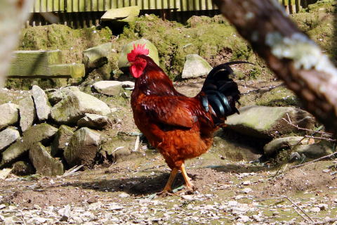 梅林の中で飼育されていた鶏(若冲の群鶏図をイメージさせる)