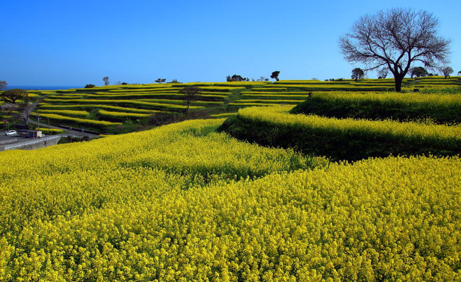・大分県、国東半島、長崎鼻の菜の花です。3月末でしたが、まだ見事でした。