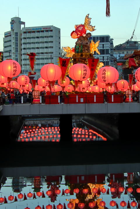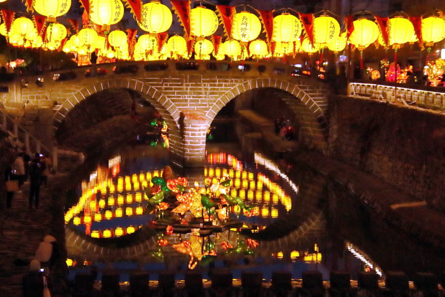 ![]() 中島川・眼鏡橋の黄色の灯りとランタン |
