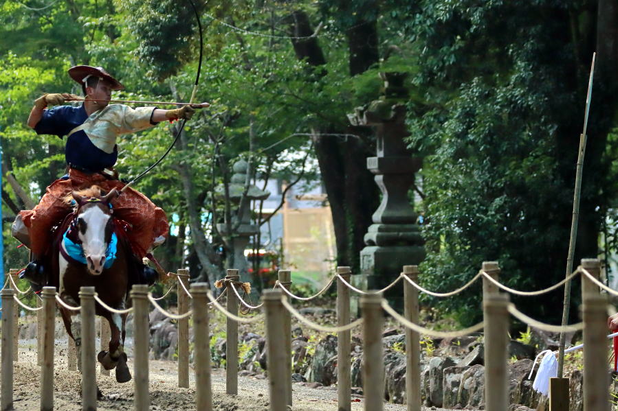 | ・見学者制限がありましたが、宇佐神宮の「流鏑馬」は開催されました。 ・この時期(7/31~8/2)は御神幸祭(夏越祭)で神輿奉納、神楽舞等が行われますが、今年はコロナ禍でこれらのイベントは中止でした。 |