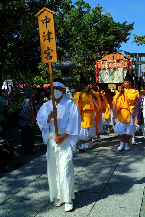 ![]() ミサゴも見学?(しっかり獲物を捕らえて)、船で運ばれた神輿が宗像大社境内に移動 |