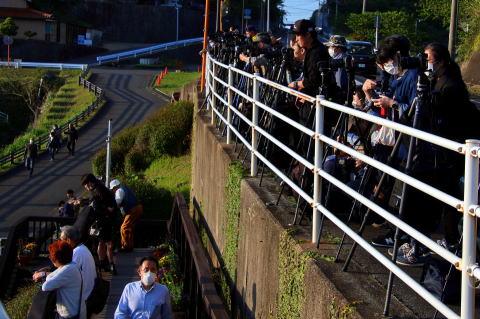 日没の1時間前、既に多くの撮影者や見物客が陣取ってました