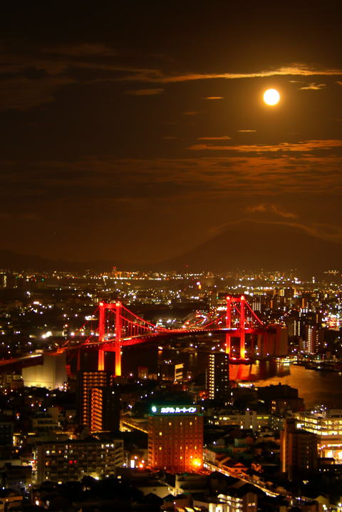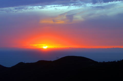 東側水平線付近は雲が多く、やっと月が見え始めた