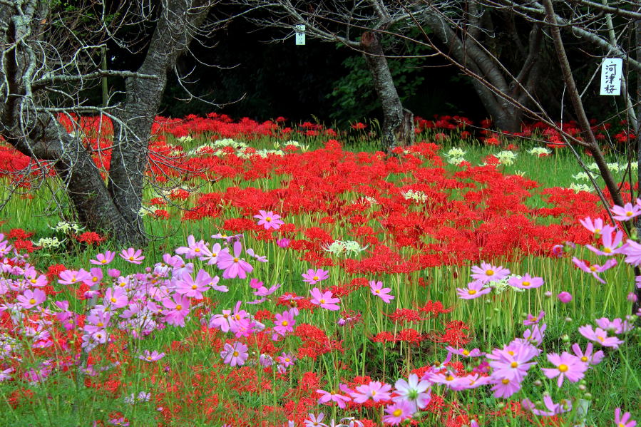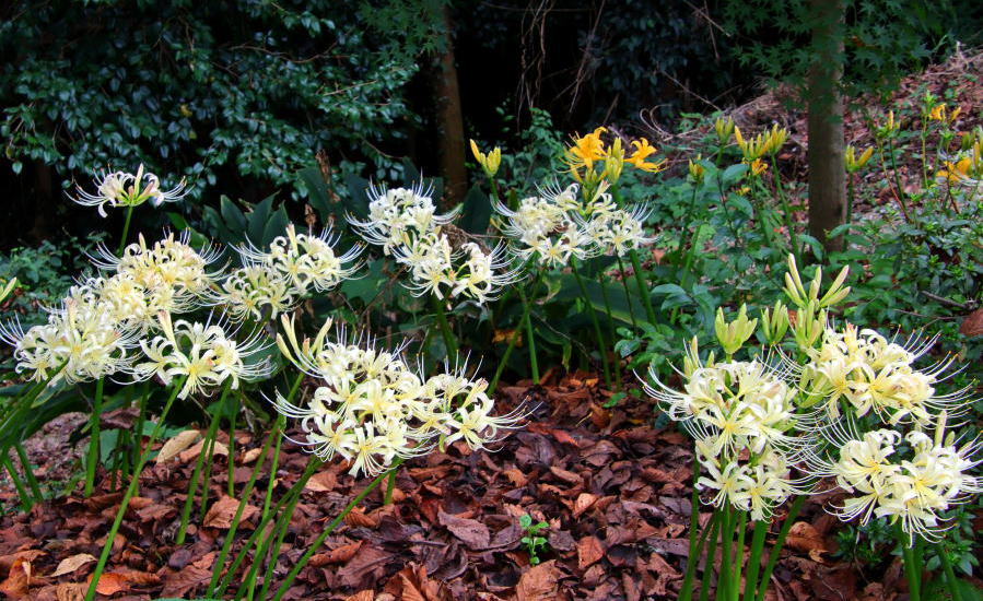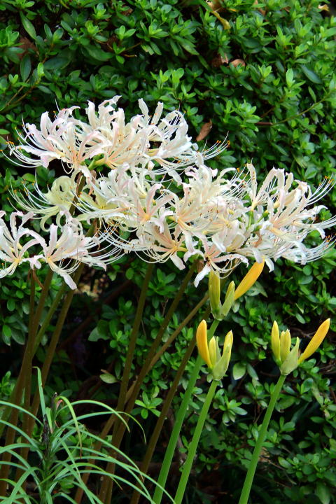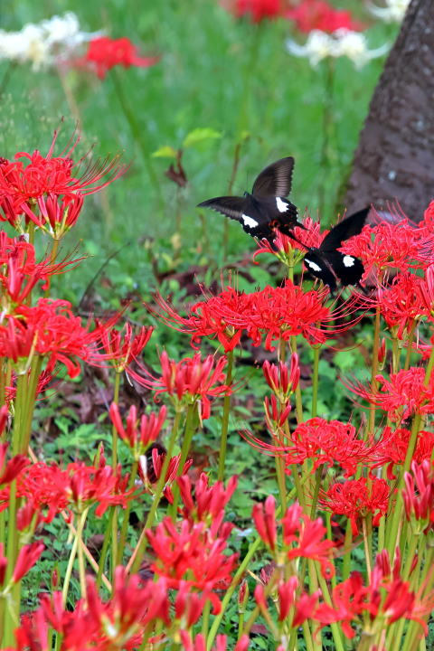 (左:モンキアゲハ 右:シロバナマンジュシャゲ)