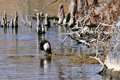 ![]() キンクロハジロ(後ろは沼杉の気根) ヒヨドリ(黄色の実に囲まれご満悦) |