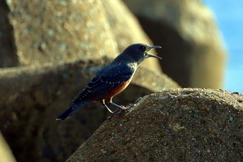 ![]() 昆虫をゲットして一飲みのイソヒヨドリ |