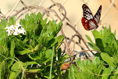 若松・岩屋海岸付近のアサギマダラ、スナビキソウの花が少ない |