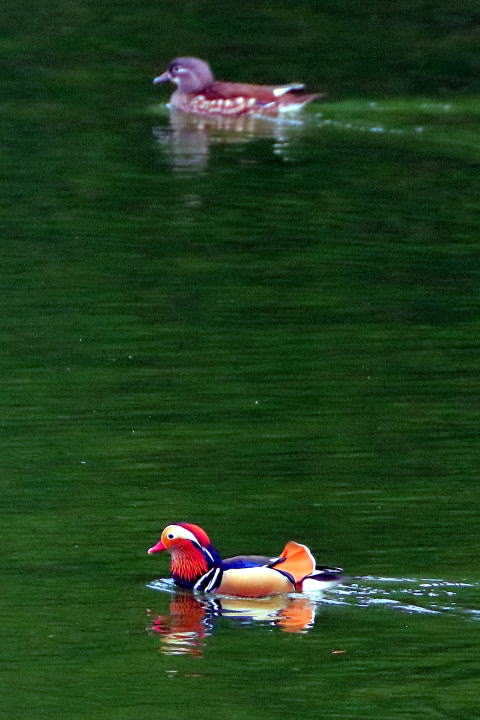 ![]() 3羽オシドリ♂をみましたが、同時に2羽撮影が精一杯でした |
