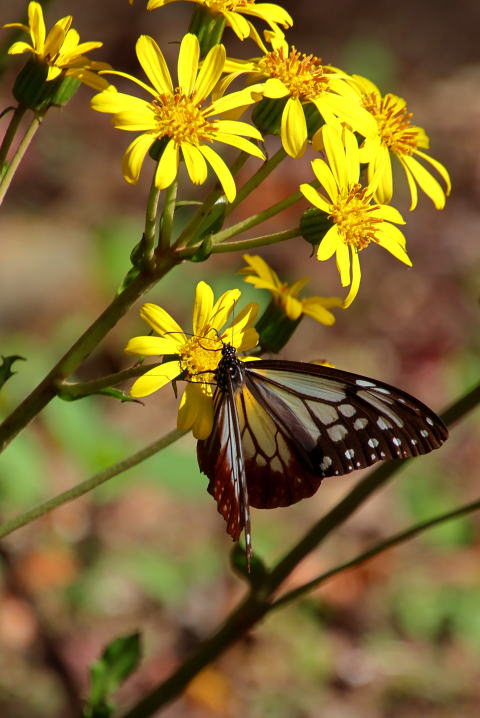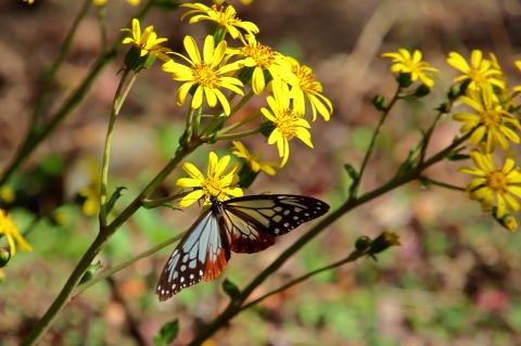 満開のツワブキにアサギマダラ